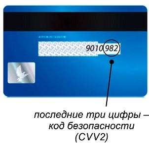 Код безопасности (cvv/сvc код) — это 3 последние цифры на обратной стороне карты: